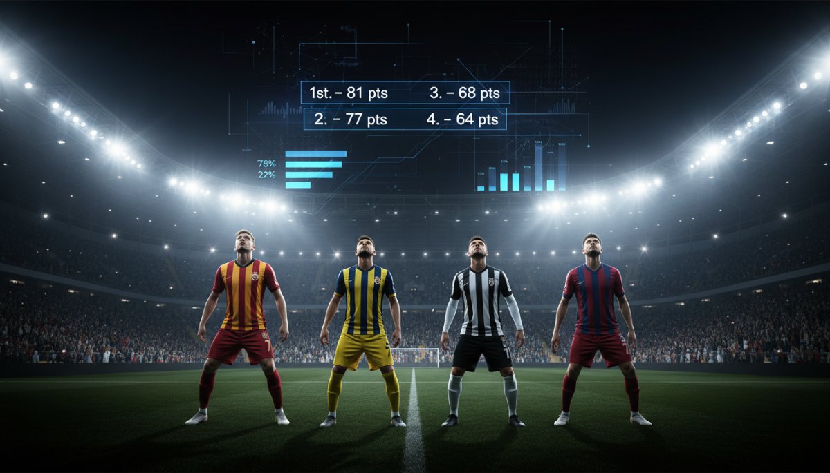 Yapay zeka analizi, Galatasaray’ın 81 puanla lider olduğunu ve Fenerbahçe’nin 77 puanla ikinci sırada yer aldığını göstermektedir. Puan farkı 4’e yükselmiştir.